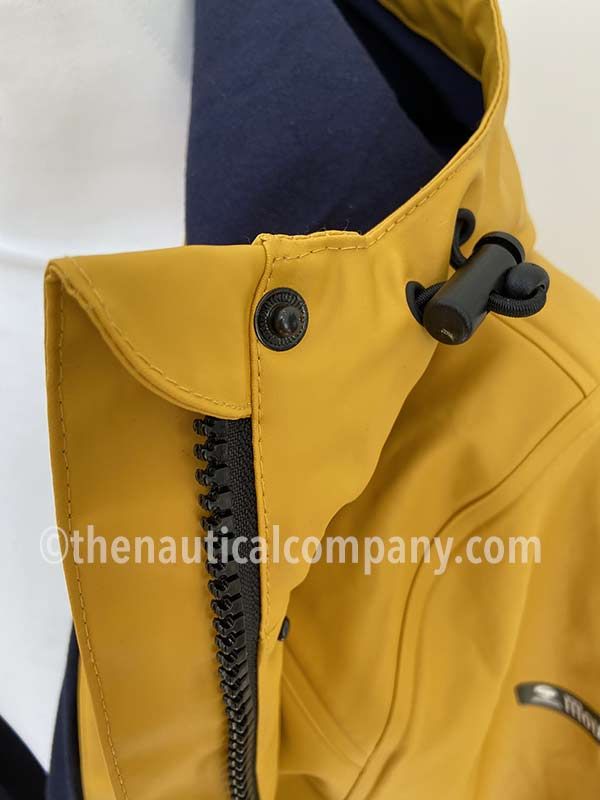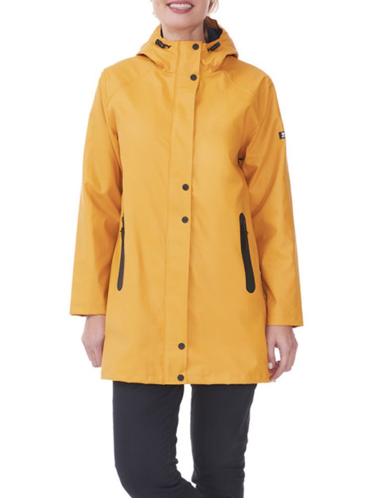 Stylish and functional raincoat from French label Mousqueton in mustard yellow. Designed for everyday wear, this waterproof jacket combines practicality with timeless design.