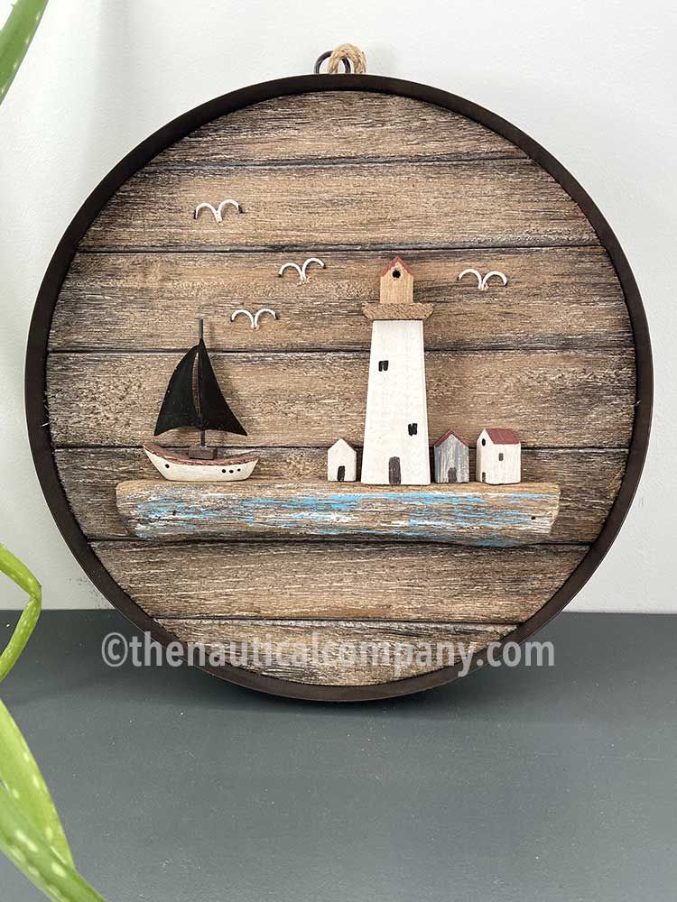 Seaside Miniature Ring Wall Art - Lighthouse & Sailing Scenery
