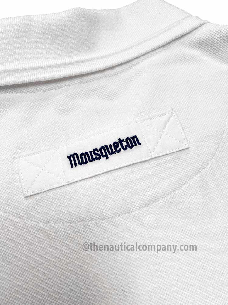 Premium white cotton piqué short sleeve polo shirt for men from the French brand Mousqueton. Designed with a classic collar and two-button placket, the Trehiguier is an essential summer top that delivers effortless style and everyday comfort. The brand’s logo is embroidered on the chest, with the name stitched in contrasting navy blue at the back of the neck.