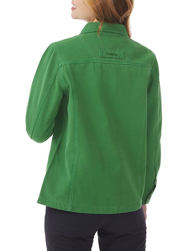 Classic French work jacket for ladies in green designed by French label Mousqueton called Bigili. A beautifully crafted high quality cotton jacket, single breasted with flat buttons, a flat collar, two large front pockets, one small front chest one and one small internal one with zip to keep your small belongings safe.