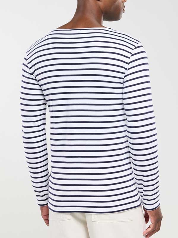 Men's authentic Breton shirt with white and navy stripes, made in France, in the classic thick interlock soft jersey cotton. This is mariniere is from the Heritage collection by French label Armor Lux.