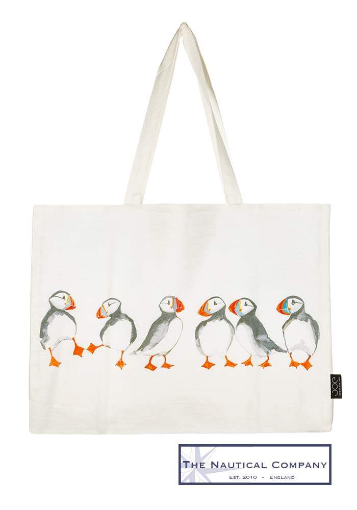 How cute is this large tote bag with puffin birds at £19, perfect for shopping or for the next seaside holiday.
