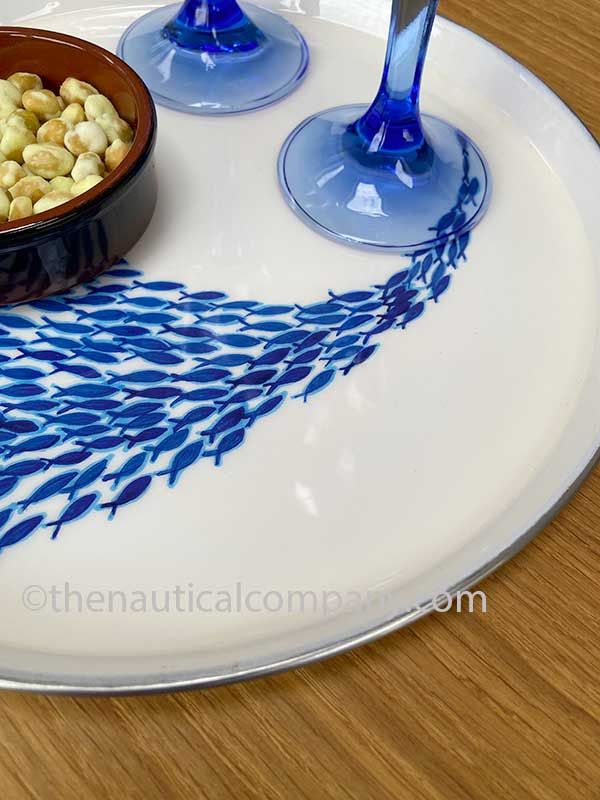Stainless Steel Round Tray with Shoal of Fish EnamelStainless Steel Round Tray with Shoal of Fish EnamelStainless Steel Round Tray with Shoal of Fish Enamel