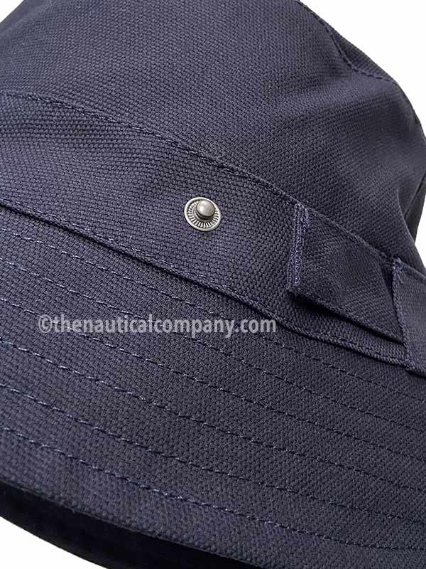 Bucket hat or bob, made in navy blue cotton canvas by French label Mousqueton with the following features: